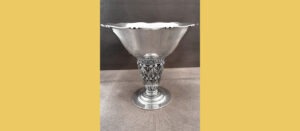 Entdecken Sie ein Meisterwerk des dänischen Designs: Dieser beeindruckende Tafelaufsatz aus dem Jahr 1926, entworfen von Johan Rohde und gefertigt von der renommierten Silberschmiede A. Michelsen, ist ein einzigartiges Stück aus Sterling Silber (925/1000). Mit 20 cm Durchmesser und 19,8 cm Höhe spiegelt dieses Kunstwerk die elegante Klarheit des frühen 20. Jahrhunderts wider – ein […]